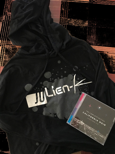 Julien-K Merch Julien-K merch I scored after the show: a sweatshirt and California Noir – The Complete Edition cd