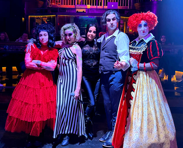The evening’s entertainment consisted of music numbers performed by Lydia Deetz and Beetlejuice who, I’m happy to say, is played by a woman. I love how Beetle House embraces gender fluidity and goes against gender norms when it comes to their characters. Sweeney Todd, the evil Red Queen from Tim Burton’s Alice in Wonderland, and even Chucky from Child’s Play also graced us with their presence.