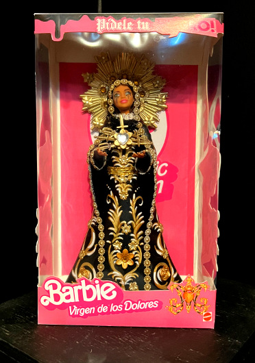 As for the Barbie, the artists’ add-ons make it so moody. Rather gutsy, actually, on Mattel’s part, marketing something not part of the plastic-Barbie universe. “Dolores” means “Sorrows,” right?