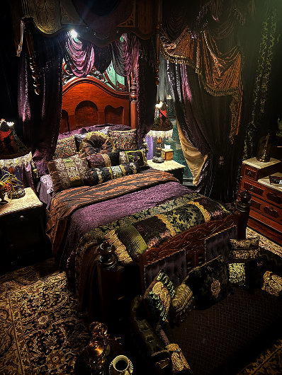 With each of my guest rooms, I didn’t want them to look like they were decorated by a fan so you will see no pictures of ravens or Poe in my Edgar Allen Poe room. That room needed to feel as if the protagonist wrote the poem “The Raven” in that bedroom. In my Bram Stoker’s Dracula bedroom, there are no pictures of vampires, framed bats or paint to look like blood. It needed to look as if that could have been the room in Dracula’s castle that he offered Jonathan Harker. In my Oscar Wilde’s Picture of Dorian Gray bedroom, it needed to feel as if that was Dorian Gray’s personal bedroom where his portrait lived.